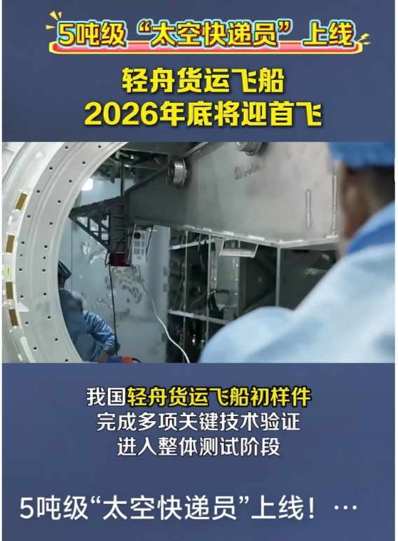 2025年12月9日,中国科技网发布重磅消息:我国新一代轻舟货运飞船初样件完成多项关键技术验证,正式进入整体测试阶段。这艘被网友戏称为“太空快递小哥”的5吨级飞船,将于2026年底完成首飞任务,为中国空间站提供“智能物流”服务。当传统货运飞船还在用“人工搬运”模式时,轻舟已用“无人超市级”的智能系统,将太空货运推向了全新维度。